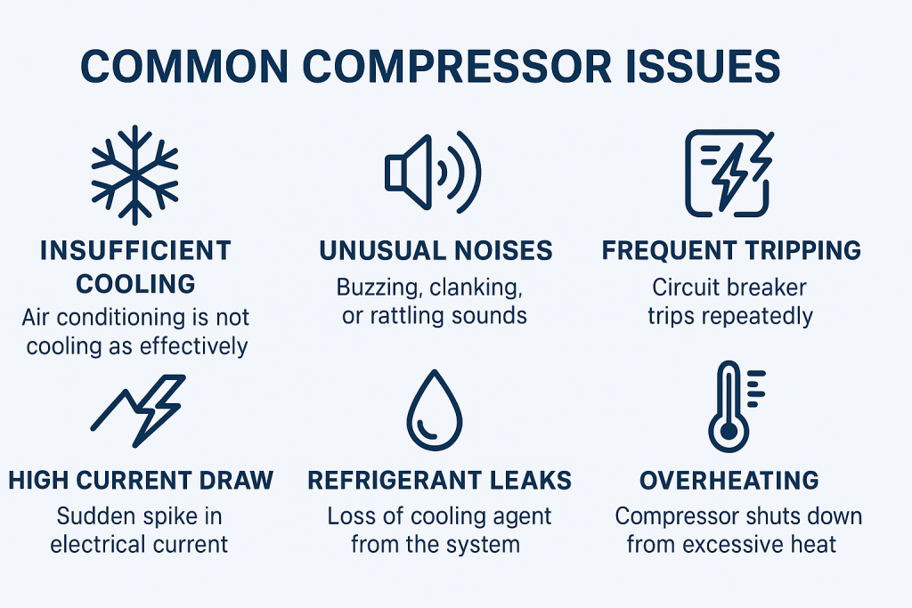 Refrigerant compliance issues. New compressors may not be compatible with outdated refrigerants, creating regulatory or safety concerns.
